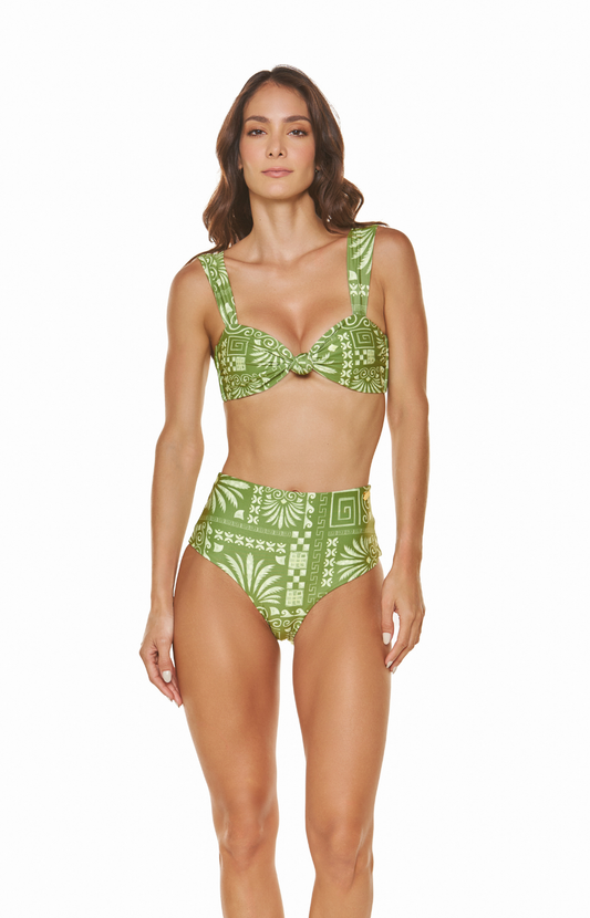 Top vestido de baño verde pistacho estampado con amarre decorativo Piha Beach