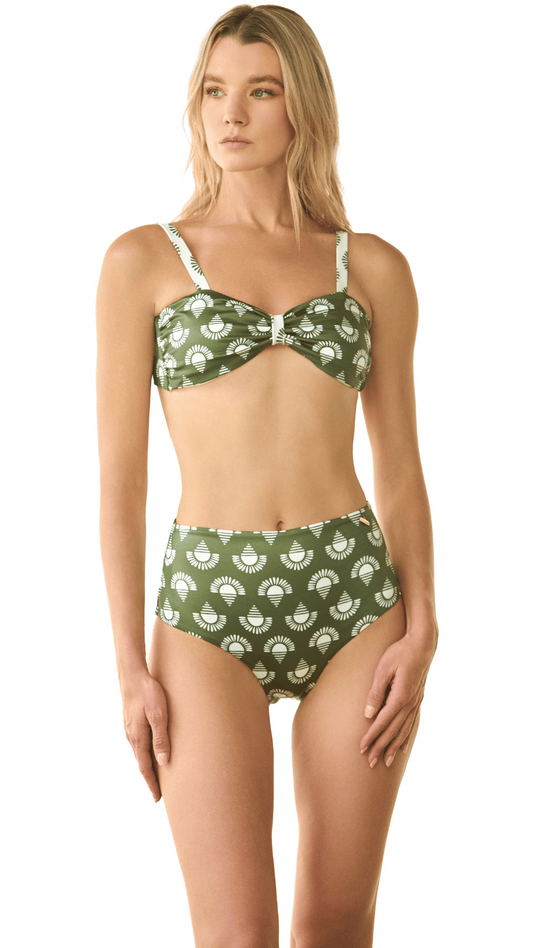 Panty vestido de baño tiro alto verde estampado con cobertura media Kalahari