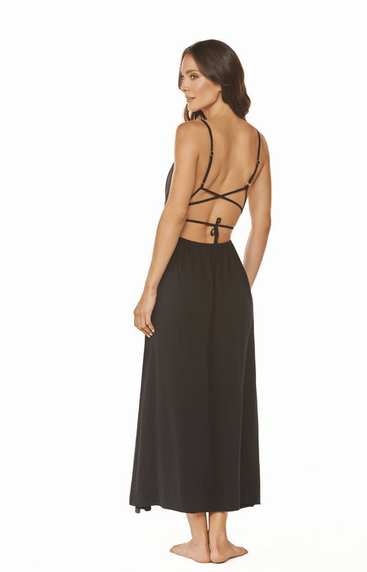 Vestido de playa largo negro con escote y tiras decotativas Marley
